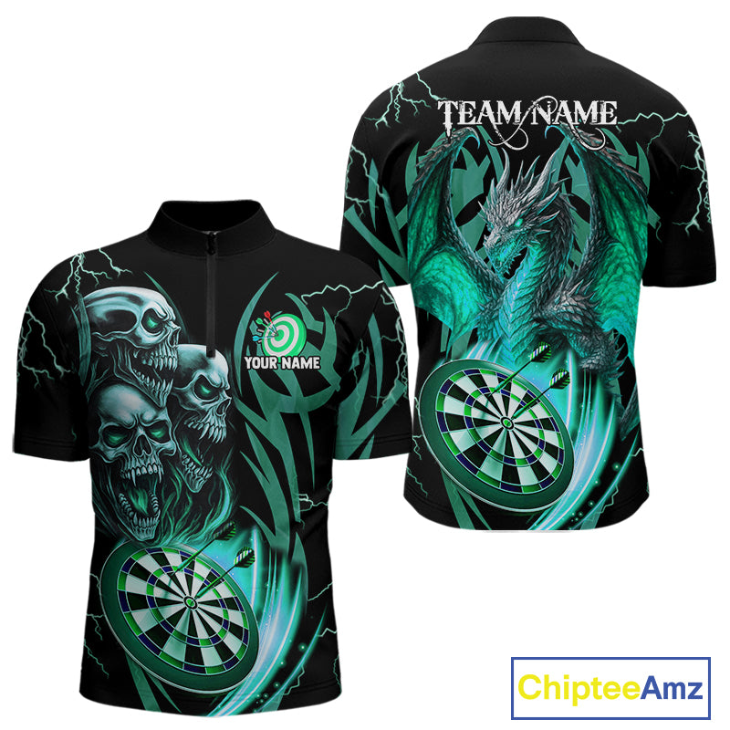Personalized Skull & Dragon Darts Shirt For Men Custom Lightning Dartboard Team Jersey |Turquoise TDM4778