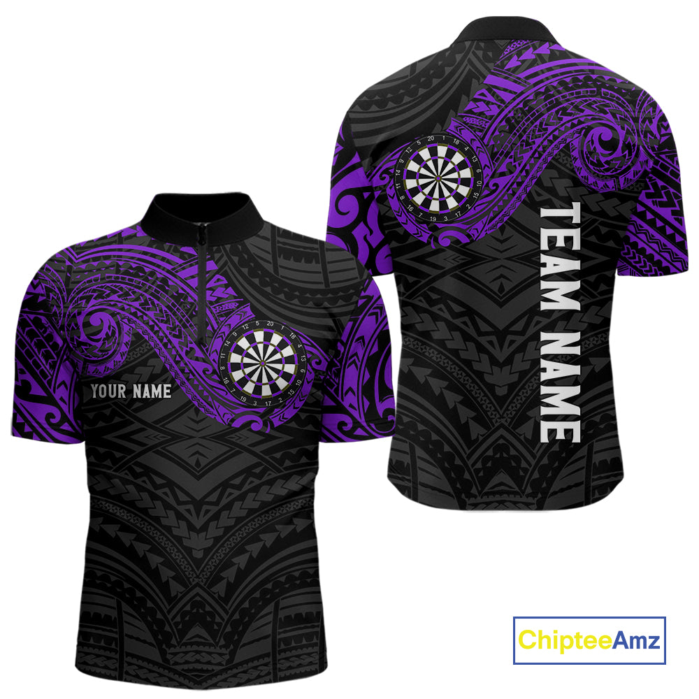 Personalized Black And Purple Tribal Darts Shirt For Men Custom Darts Jersey Team Polo & 1/4 Zip TDM4825