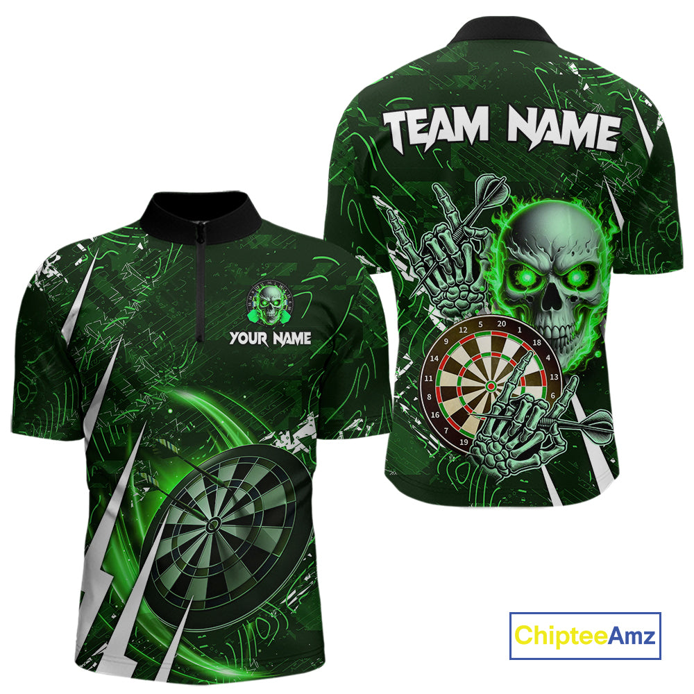 Green 3D Skull Darts Polo & 1/4 Zip For Men Custom Darts League Team Jersey, Best Darts Gifts TDM4829