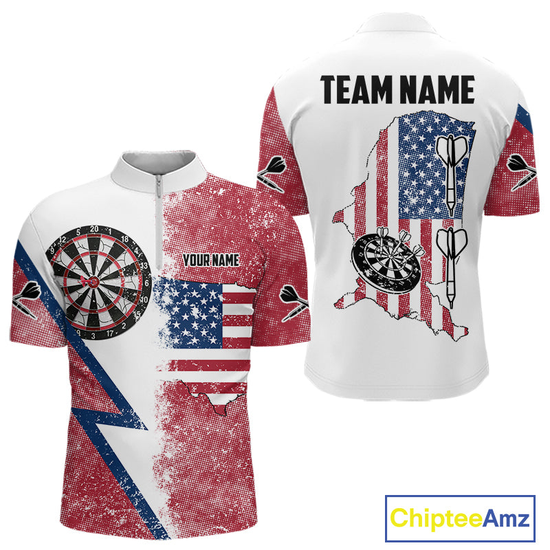 Personalized Grunge American Flag Men's Dart Shirts Custom Patriotic Darts Team Jersey |White TDM4906