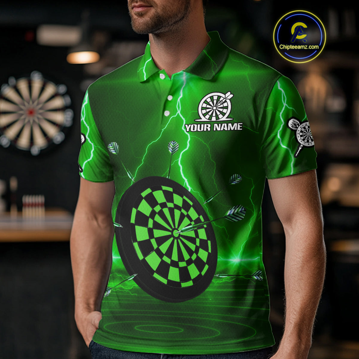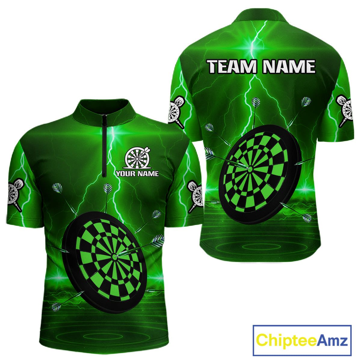 Personalized Dartboard Thunder Lightning Green Darts Shirt For Men Custom Glowing Darts Jersey TDM4921