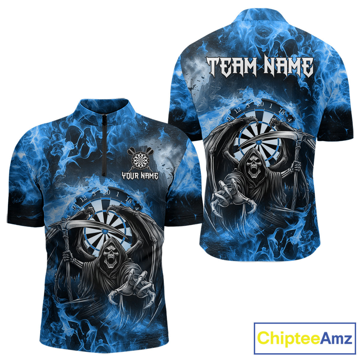 Personalized Blue Flaming Grim Reaper Darts Shirt For Men Custom Fire Darts Team Jersey TDM4975