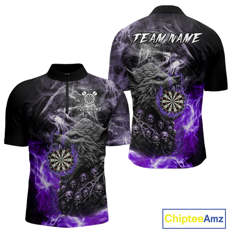 Personalized Wolf And Skull Smoke Purple Mens Dart Shirts Custom Dart Jerseys Team Polo & 1/4 Zip TDM5184