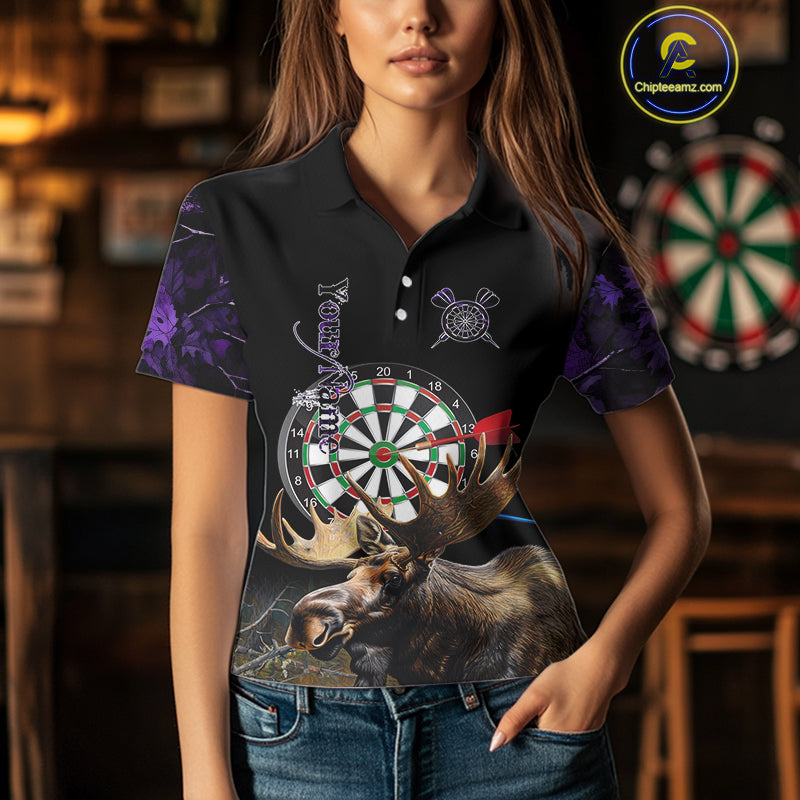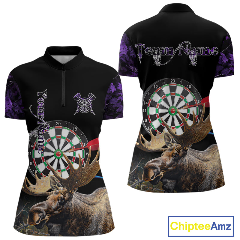 Personalized Black and Purple Camo Moose Darts Shirts For Women Custom Darts Team Jerseys NQS10976