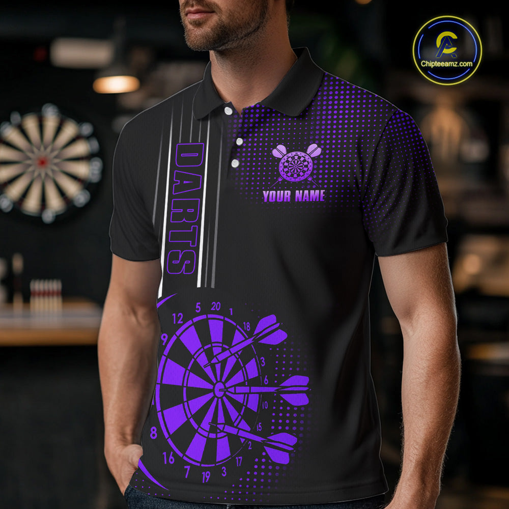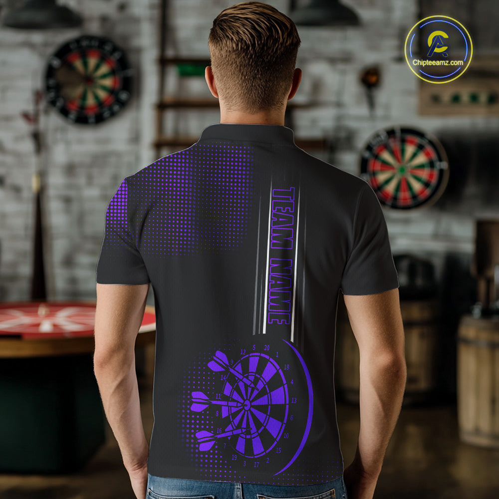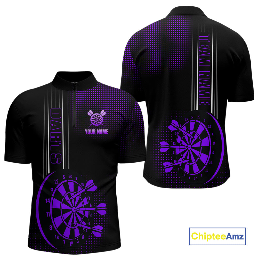 Personalized Black and Purple Darts Polo, Quarter Zip Shirt For Men Custom Dart Outfit Team Jerseys NQS10594