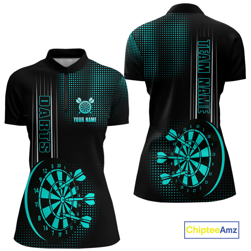 Personalized Black and Turquoise Darts Shirt For Women Custom Dart Outfit Team Jerseys NQS10595