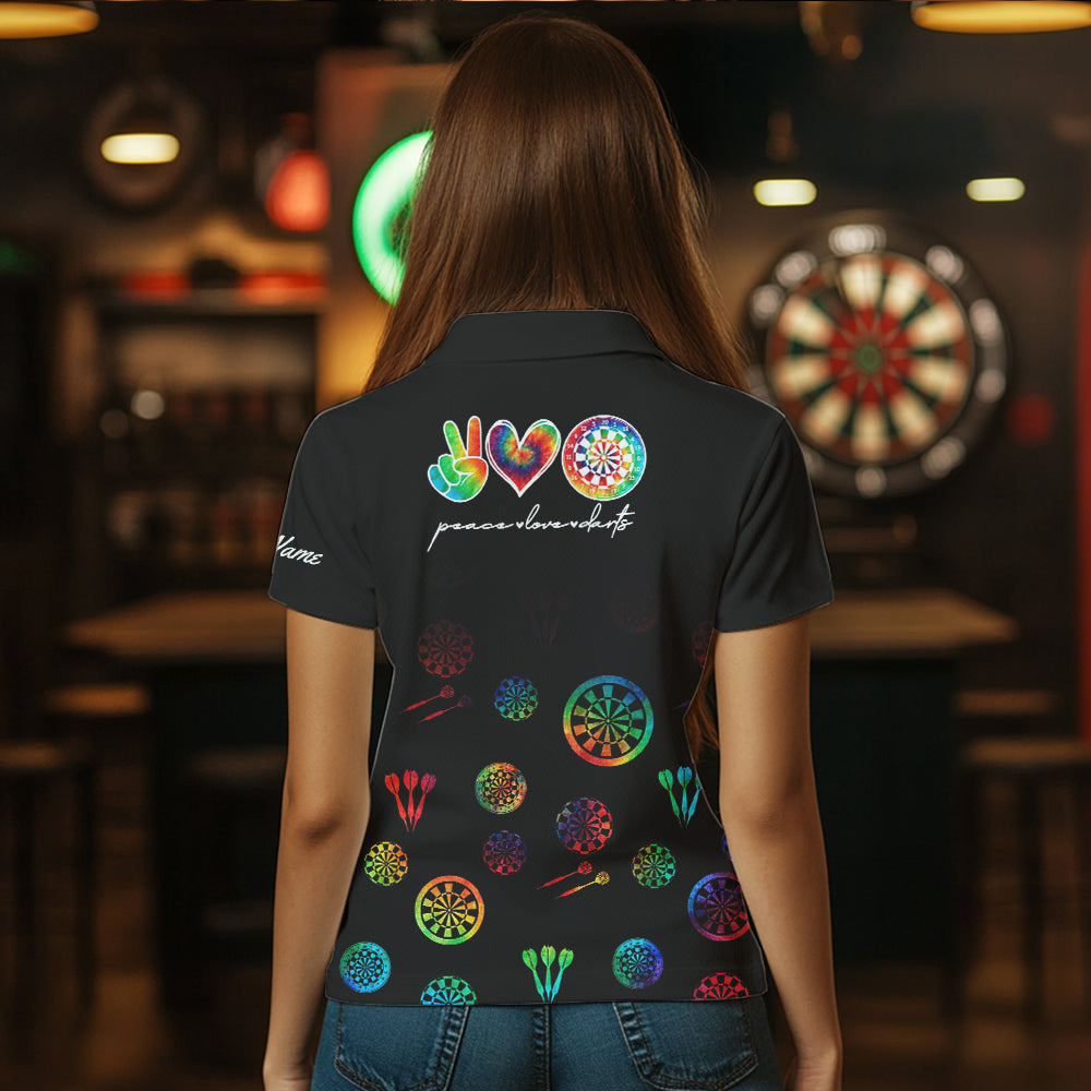 Personalized Colorful tie dye Black Camo Darts Shirts For Women Custom Peace Love Darts Team Jerseys NQS9484