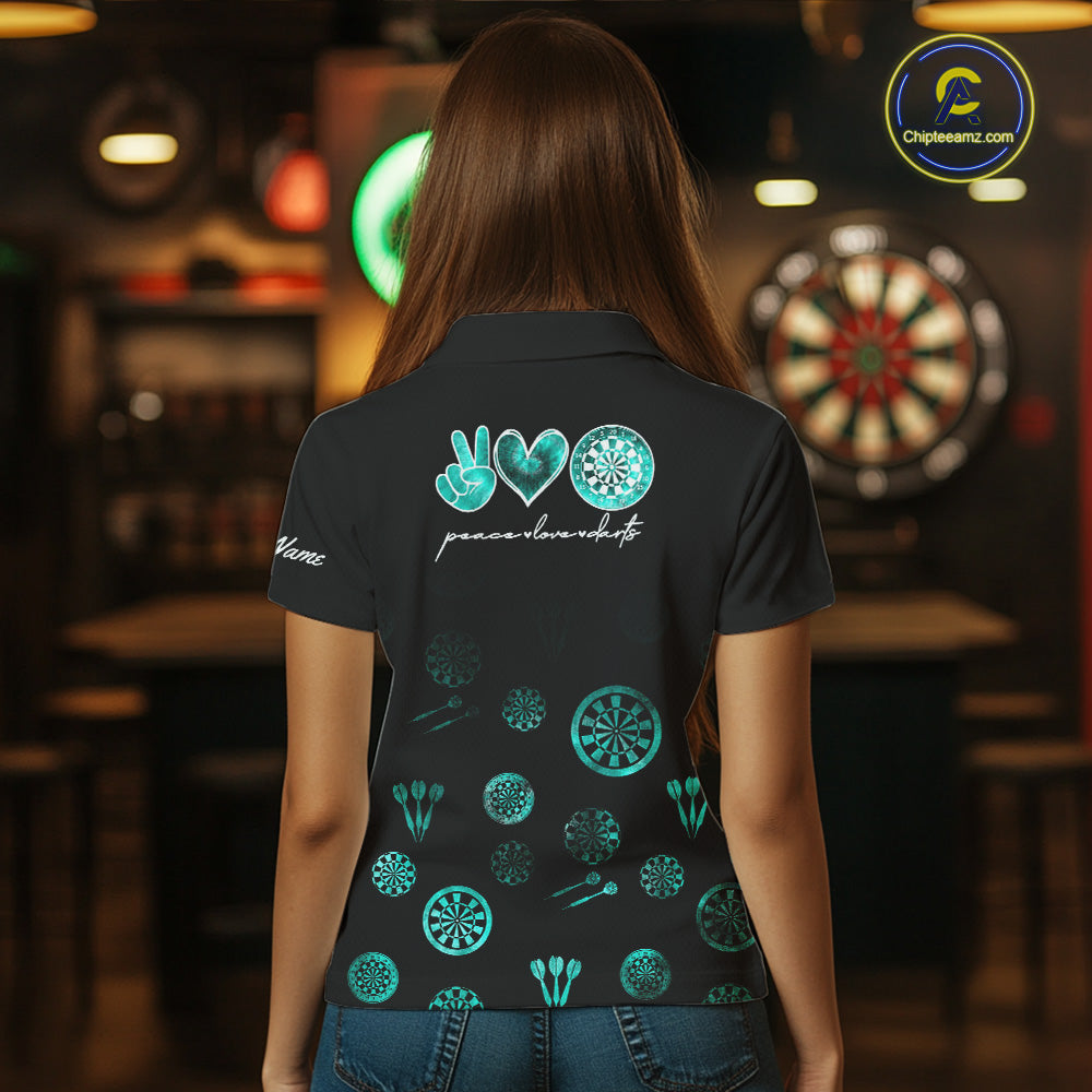 Personalized Turquoise Black Camo Darts Shirts For Women Custom Peace Love Darts Team Jerseys NQS10542