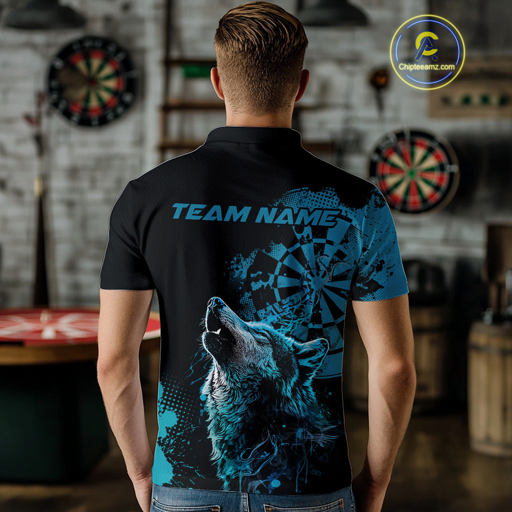 Custom Black And Blue Splatter Grunge Dart Wolf Men Polo Shirts, Wolf Dart Team Jerseys IPHW10010