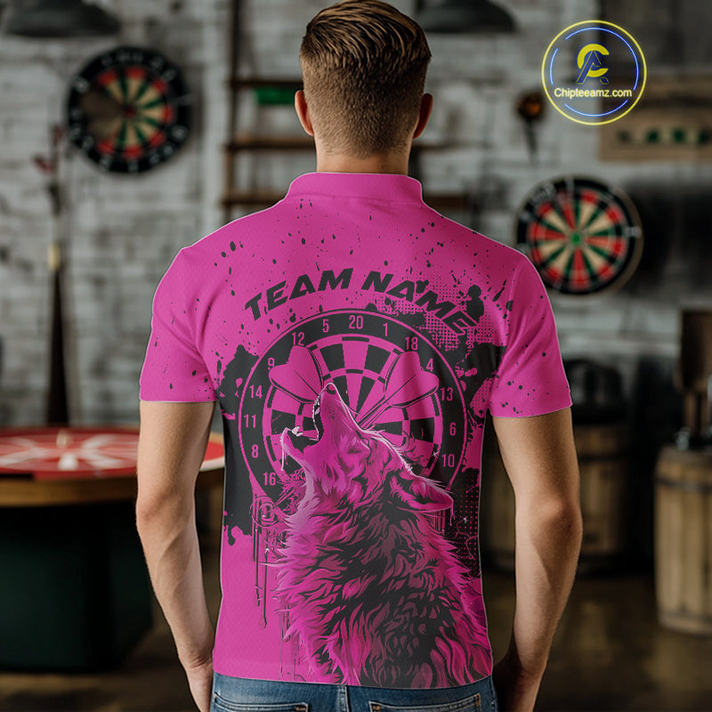Custom Grunge Splatter Pink Wolf Dart Men Polo Shirt, Wolf Dart Team Jerseys IPHW10016