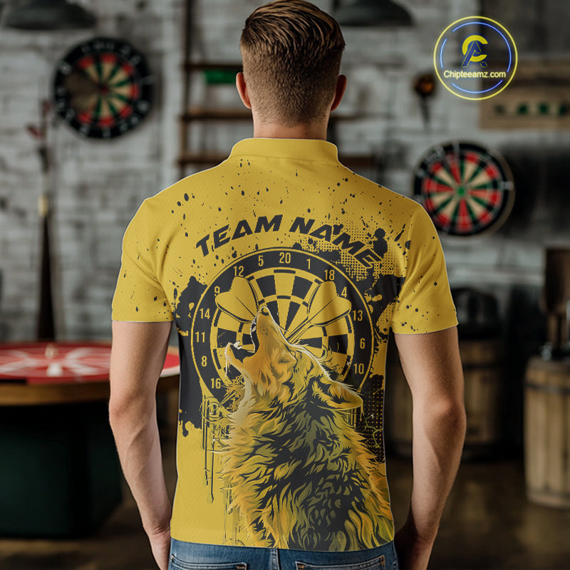 Custom Grunge Splatter Yellow Wolf Dart Men Polo Shirt, Wolf Dart Team Jerseys IPHW10018