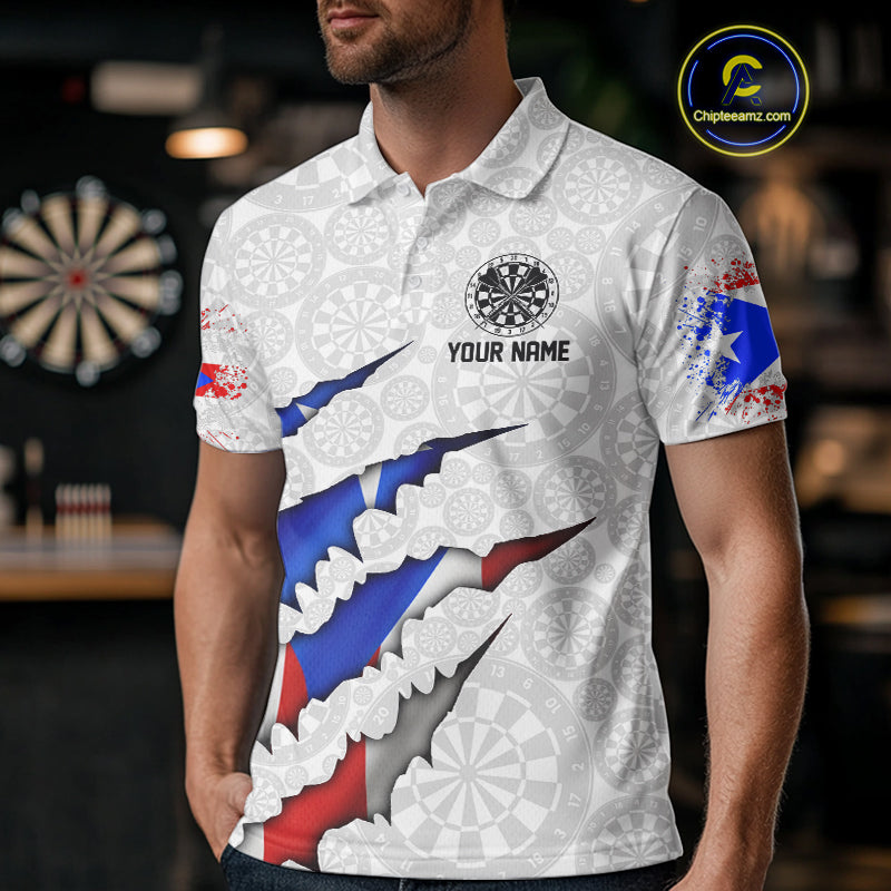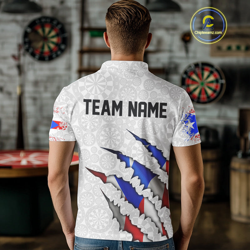 Custom Puerto Rico Flag Dart Team Polo Shirt For Men, Puerto Rico Dart Jerseys IPHW10021