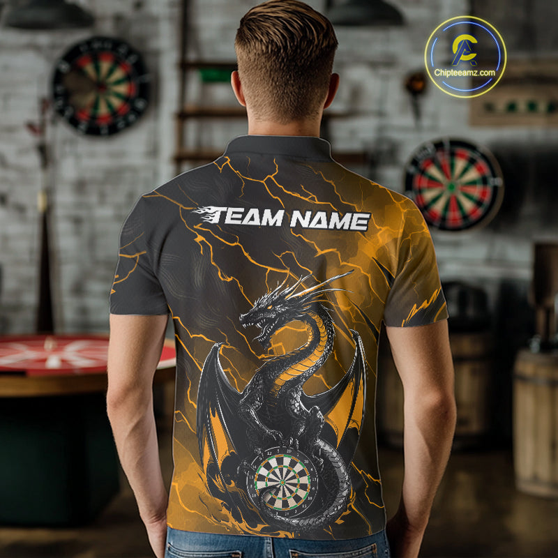 Custom Gold Thunder Lightning Dragon Dart Polo Shirts For Men, Dragon Dart Team Jerseys IPHW9940
