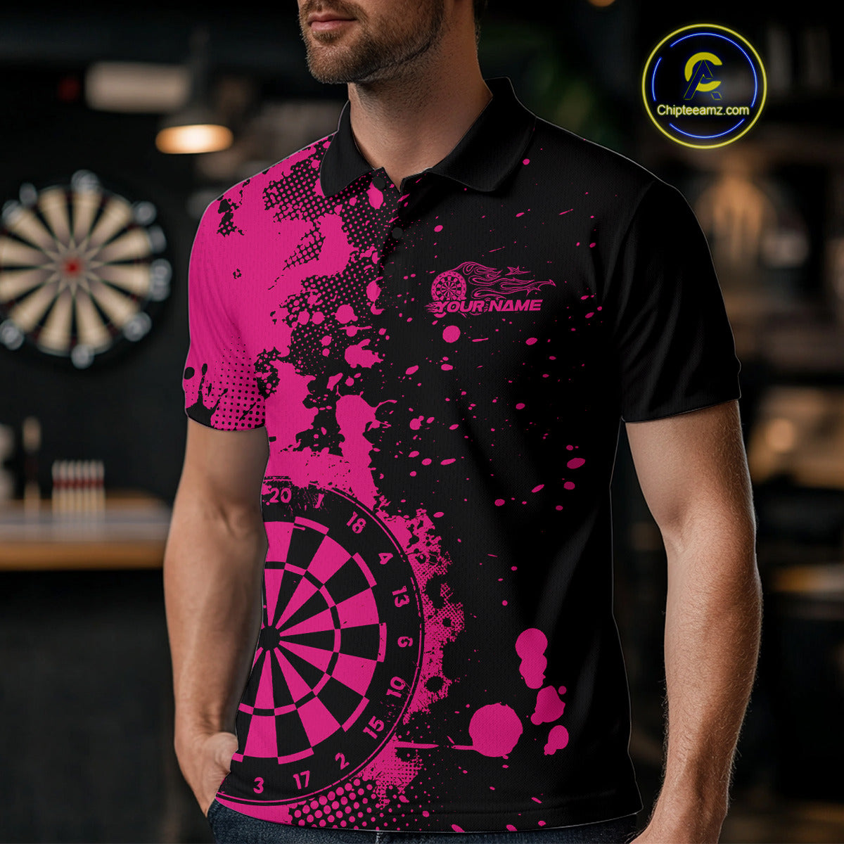 Custom Black And Pink Splatter Dartboard Dart Polo Shirt For Men, Grunge Dart Team Jerseys IPHW9957