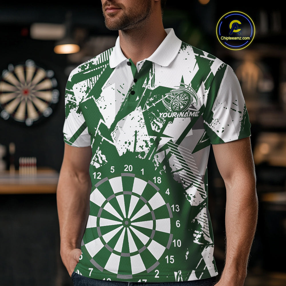 Custom Grunge Splatter Green And White Dartboard Dart Team Men Polo Shirts, Dart Jerseys IPHW9972