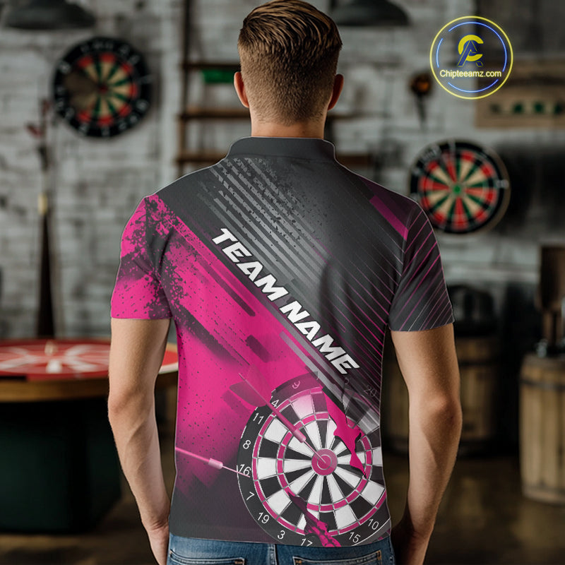 Custom Grunge Pink Dartboard Dart Team Polo Shirts For Men, Dart Players Jerseys IPHW9978