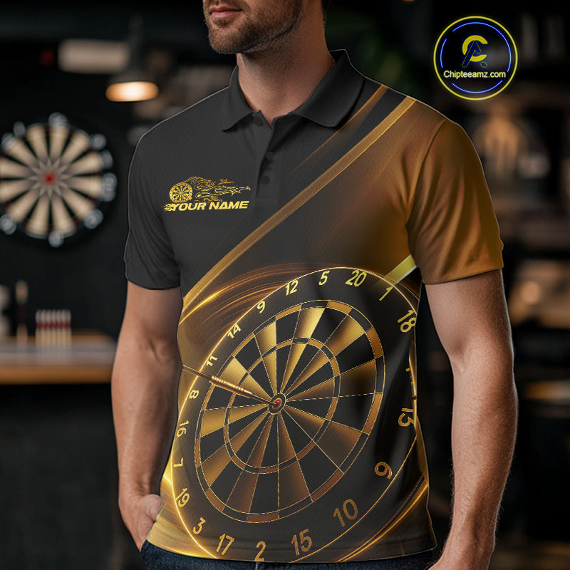 Custom Black And Gold Dartboard Dart Team Jerseys, Dart League Polo Shirt For Men IPHW9992