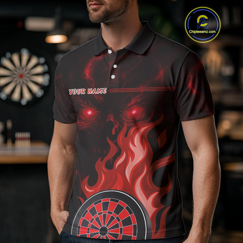 Custom Black And Red Flames Skull Dartboard Polo Dart Shirt For Men Outfit Dart Team Jerseys NYN0926