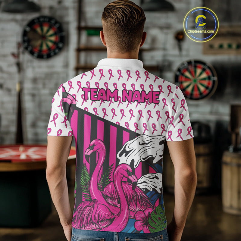 Custom Pink Ribbon Flamingo Dart Polo Shirt For Men Breast Cancer Awareness Dart Jerseys NYN1415