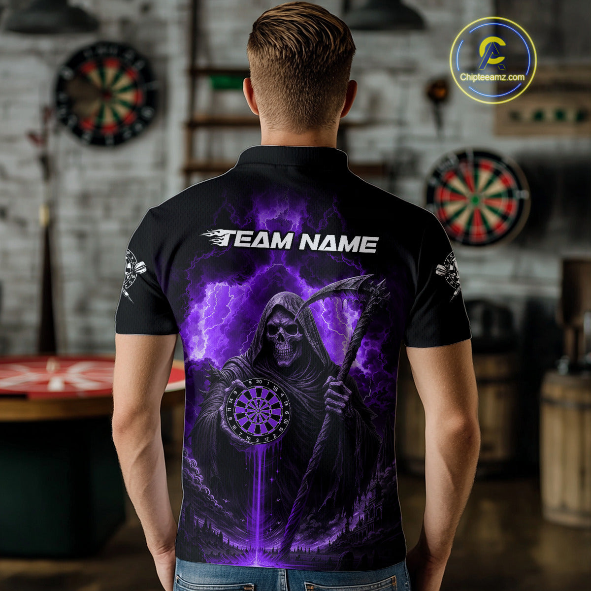 Custom Lightning Purple Grim Reaper Dartboard Dart Polo Shirt For Men Dart Team Jerseys NYN1420