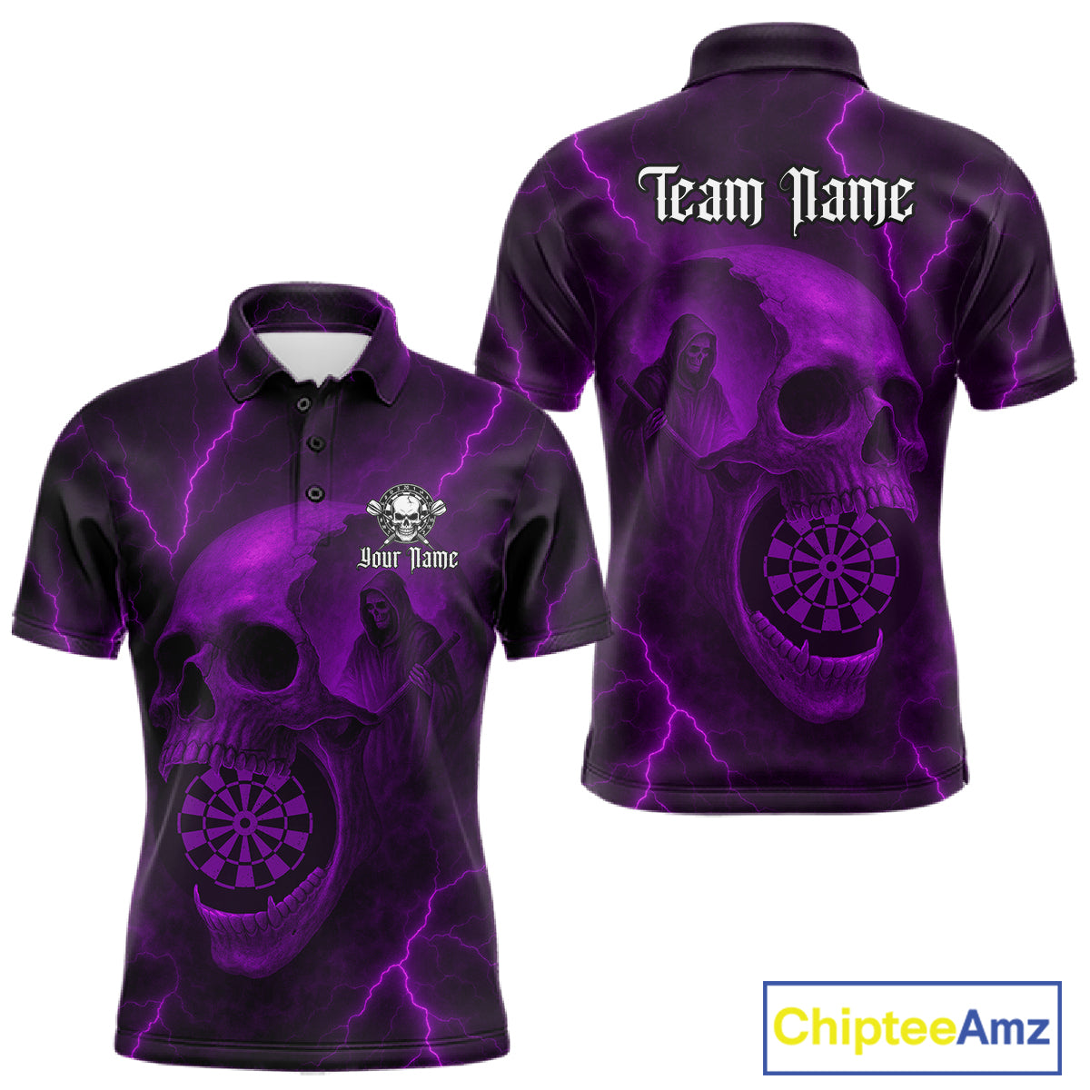 Custom Lightning Purple Grim Reaper Dartboard Men Dart Polo Shirt Skull Dart Team Jersey NYN1445