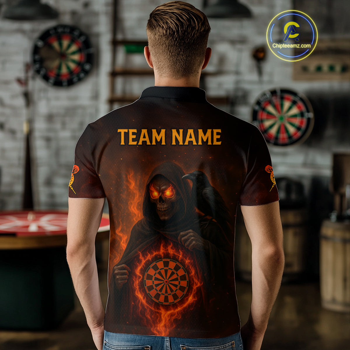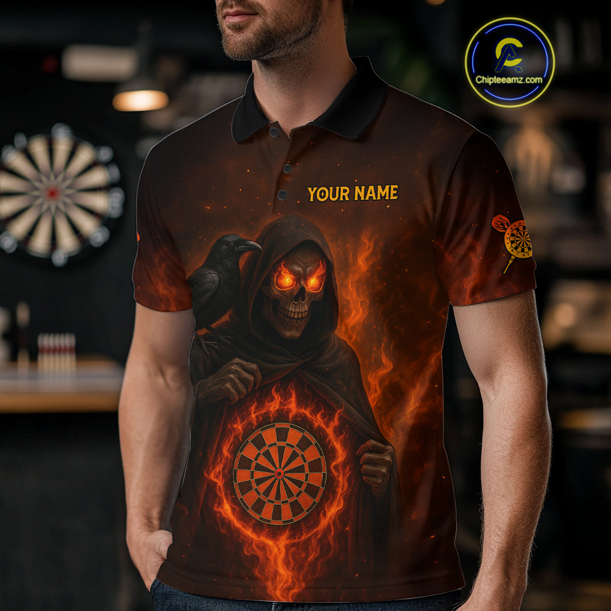 Custom Red Flames Raven Grim Reaper Dartboard Dart Polo Shirt For Men Dart Outfit Jersey NYN1452