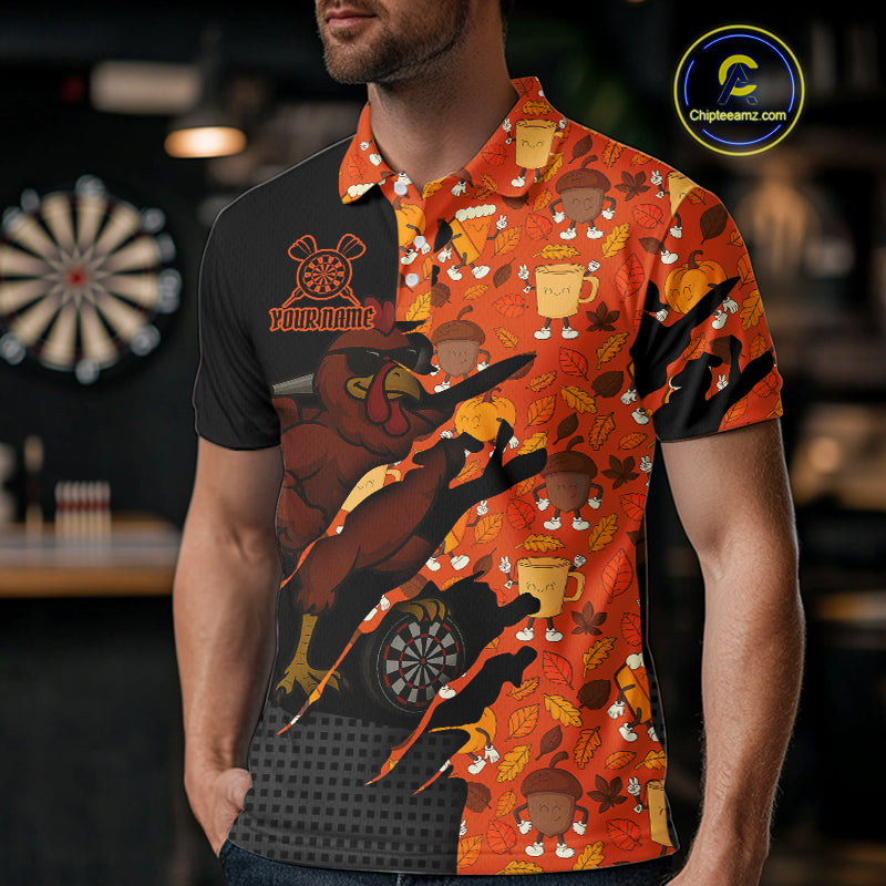Custom Turkey Dartboard Funny Dart Polo Shirt For Men Autumn Thanksgiving Dart Jersey NYN1460