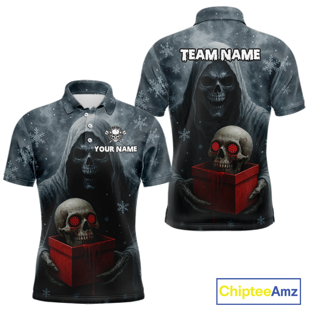 Custom Red Dripping Grim Reaper Creepy Christmas Dart Polo Shirt For Men Xmas Dart Jersey NYN1476