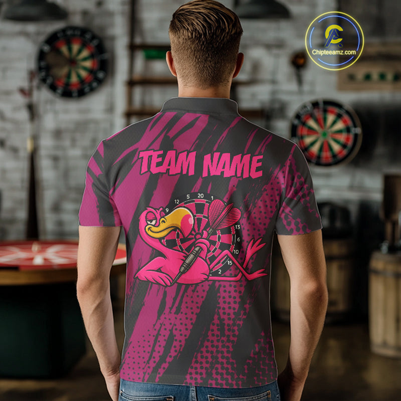 Custom Black And Pink Flamingo Dartboard Funny Dart Team Men Polo Shirt Dart Jerseys NYN1538