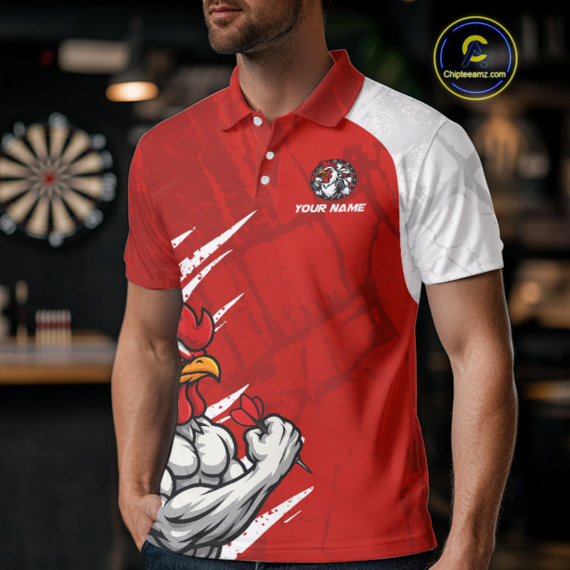 Custom White And Red Rooster Dartboard Dart Men Polo Shirt Funny Dart Team Jerseys NYN1540
