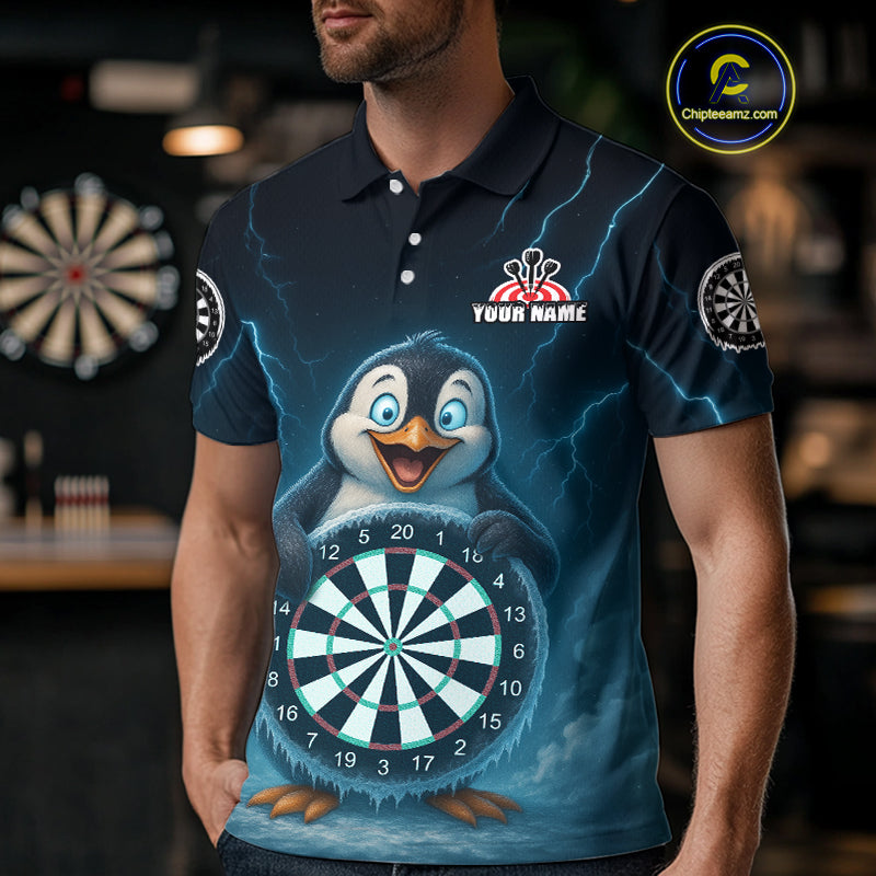 Custom Funny Penguin Icy Dartboard Dart Polo Shirt For Men Outfits Dart Jerseys NYN1544