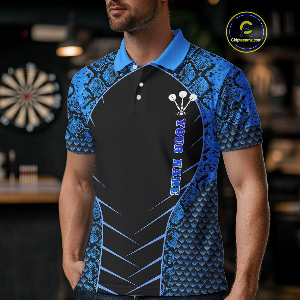 Custom Black And Blue Snake Pattern Cobra Dart Men Polo Shirt, Dart Jerseys NYN1550