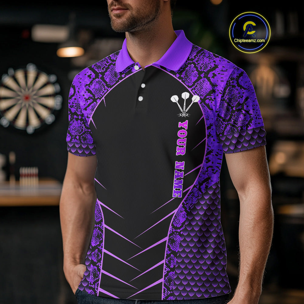Custom Black And Purple Snake Pattern Cobra Dart Men Polo Shirt, Dart Jerseys NYN1551