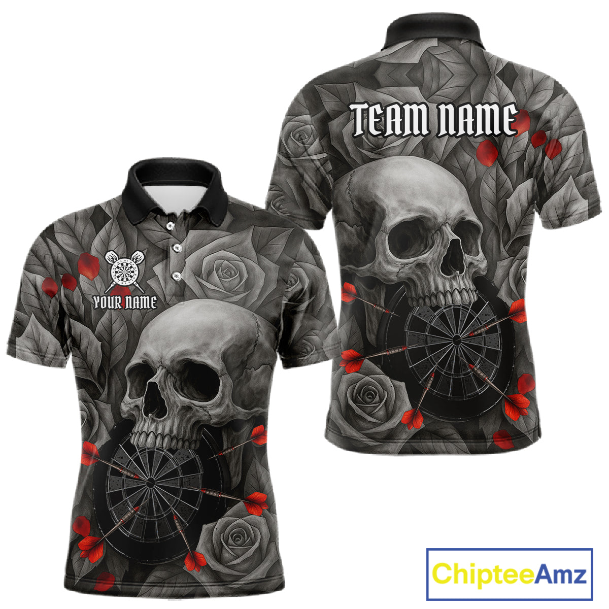 Custom Red Grey Roses Skull Dartboard Dart Men Polo Shirt Outfits Dart Team Jerseys NYN1560