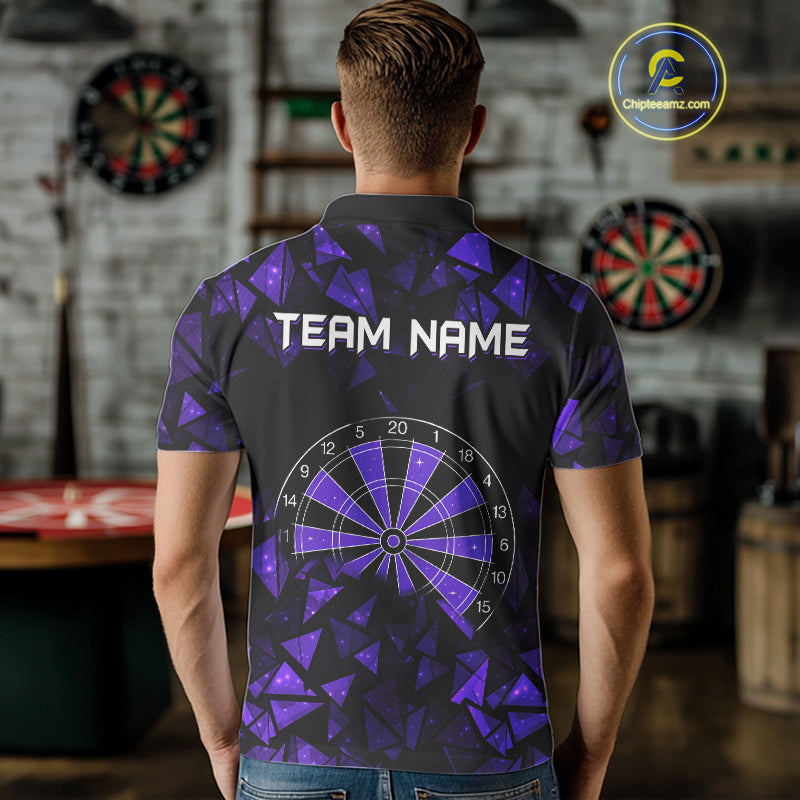 Custom Black & Purple Geometric Dartboard Dart Polo Shirt For Men Outfits Dart Jerseys NYN1606