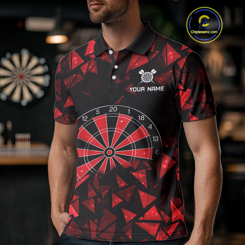 Custom Black & Red Geometric Dartboard Dart Polo Shirt For Men Outfits Dart Jerseys NYN1607
