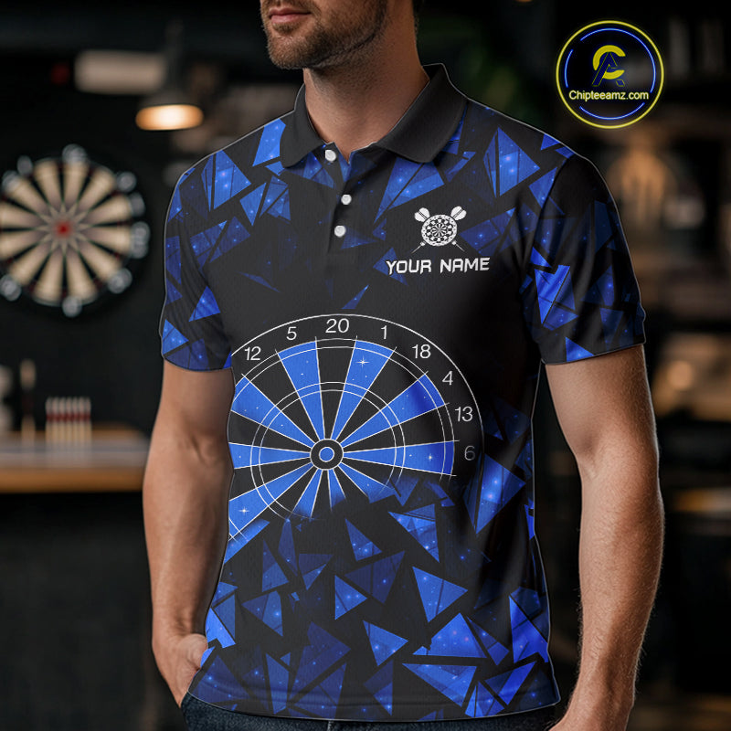 Custom Black Blue Geometric Dartboard Dart Polo Shirt For Men Outfits Dart Jerseys NYN1608