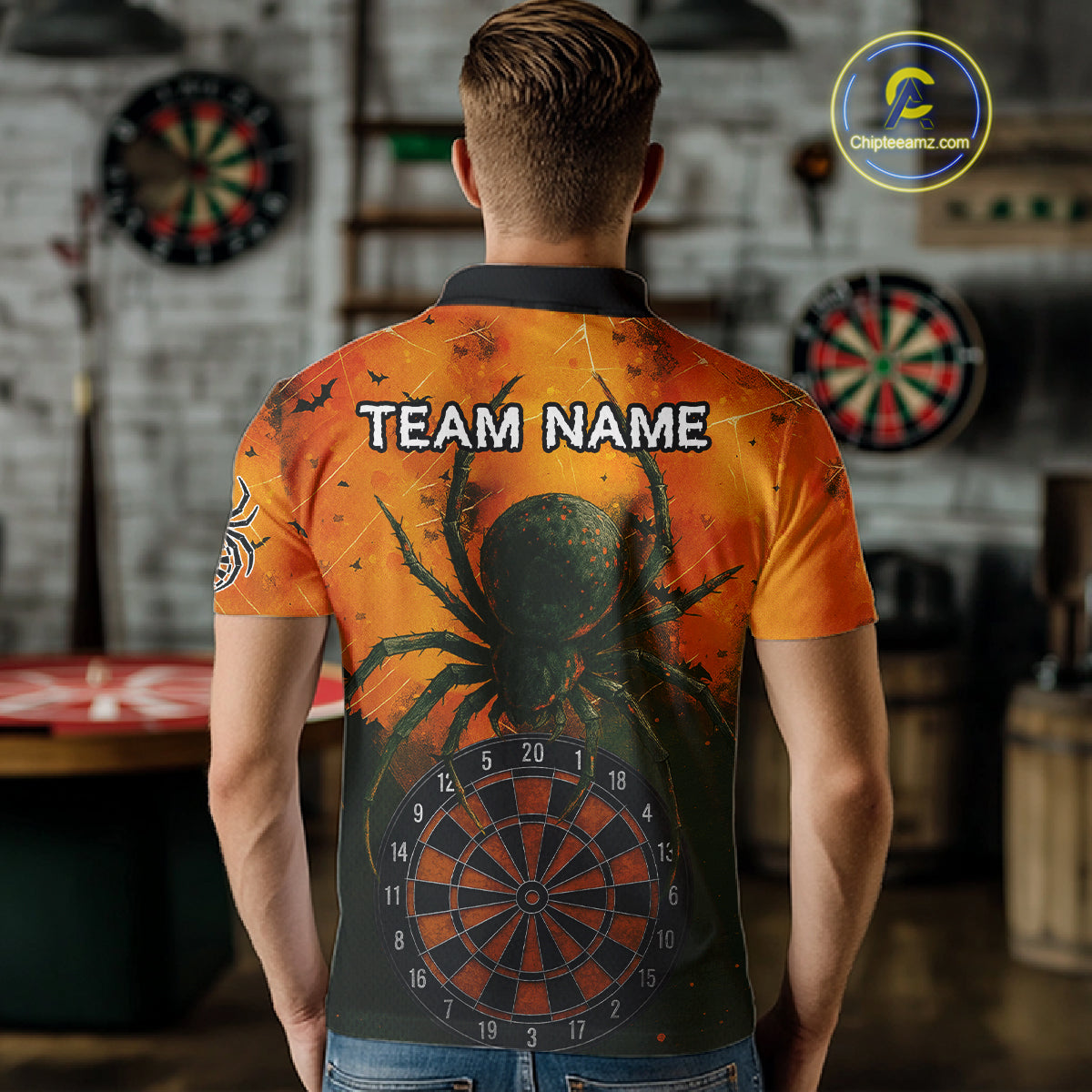 Custom Orange Spider Dartboard Halloween Dart Men Polo Shirt Grunge Dart Jerseys NYN1615
