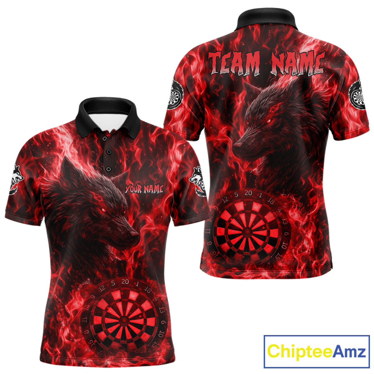 Custom Black Blue Flames Wolf Dartboard Dart Men Polo Shirt Outfits Dart Jerseys NYN1618