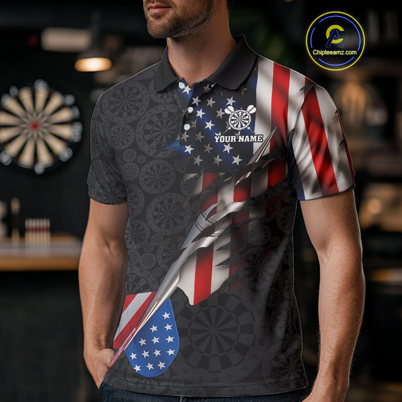 Custom American Flag Dart Arrow Black Dart Men Polo Shirt Patriotic Dart Team Jerseys NYN1625