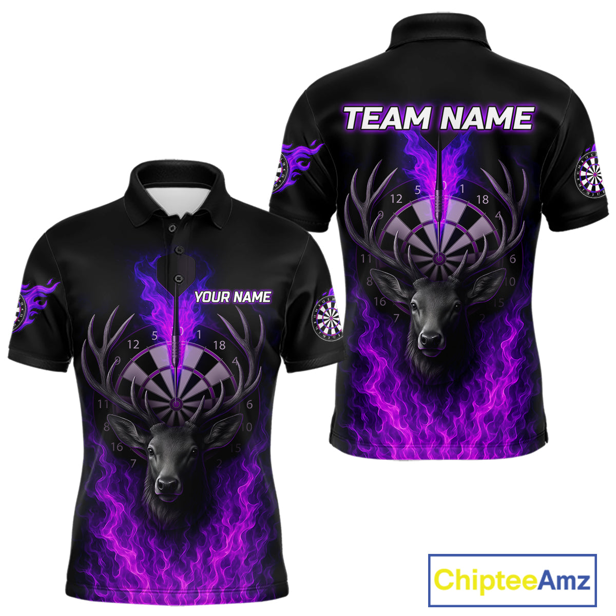 Custom Purple Flames Dartboard Deer Funny Dart Men Polo Shirt Dart Team Jerseys NYN1632
