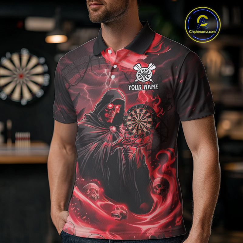 Custom Red Grim Reaper Fire Flames Dart Men Polo Jerseys Outfits Skull Dart Shirt NYN1682