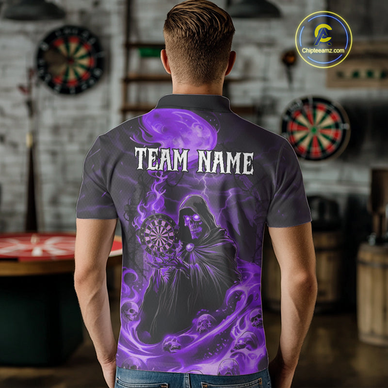 Custom Purple Grim Reaper Fire Flames Dart Men Polo Jerseys Outfits Skull Dart Shirt NYN1683
