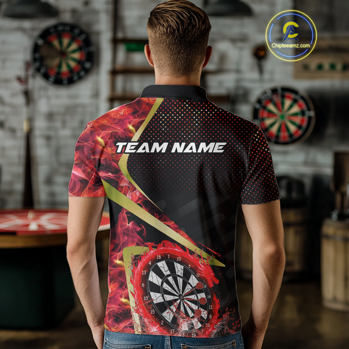 Custom Red Flames Dragon Dartboard Halftone Dart Men Polo Jerseys Gold Dart Team Shirt NYN1692
