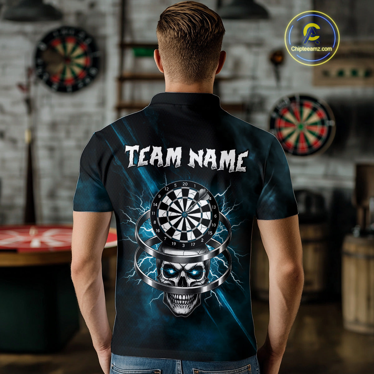 Custom Silver Skull Dartboard Lightning Turquoise Dart Men Polo Jerseys Outfits Dart Shirt NYN1712