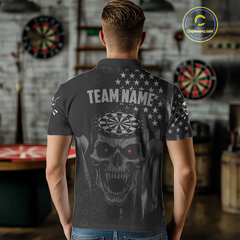 Custom Black Grey Grunge Skull Patriotic Dart Men Polo Jerseys USA Flag Dart Shirts NYN1726