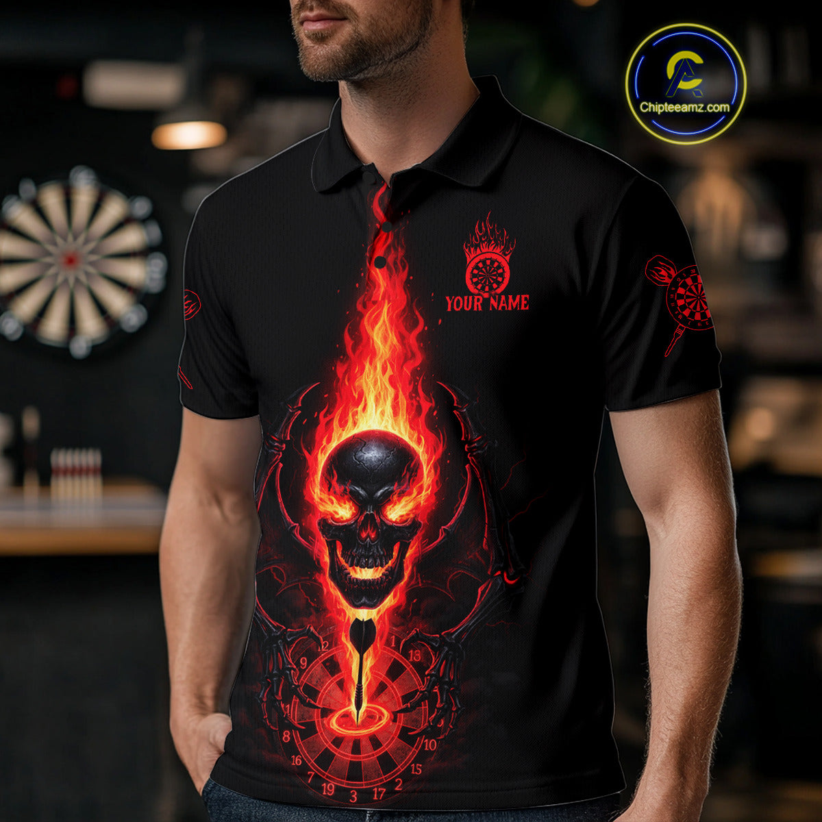 Skeleton Fire Flame Dartboard Custom Mens Polo Dart Shirt Red Skull Dart Jerseys NYN1769