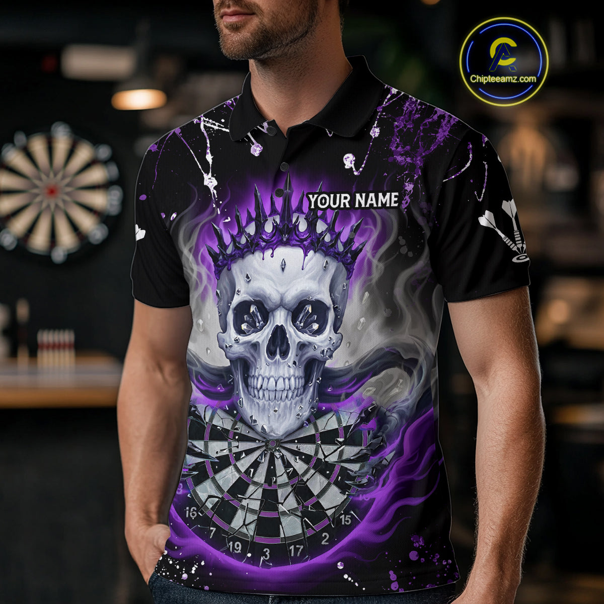 Grey Purple Smoke Crown Skull Dartboard Custom Mens Polo Dart Shirt Splatter Dart Jerseys NYN1772