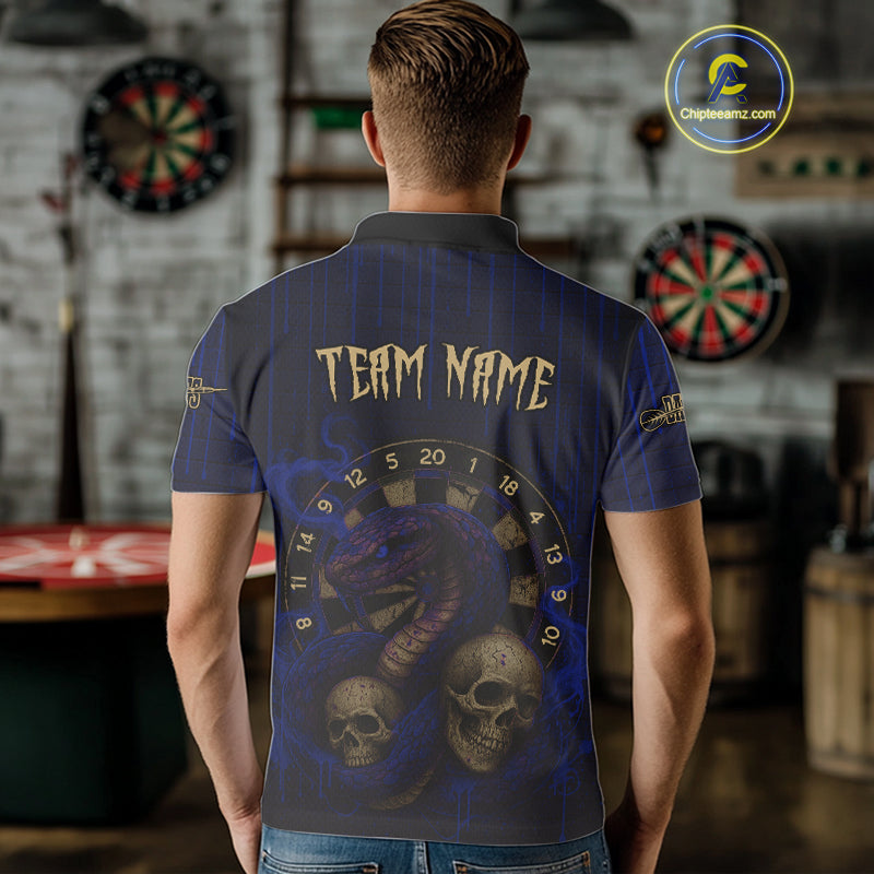 Blue Dripping Cobra Dartboard Custom Men's Polo Darts Shirt Grunge Skull Darts Jersey NYN1798
