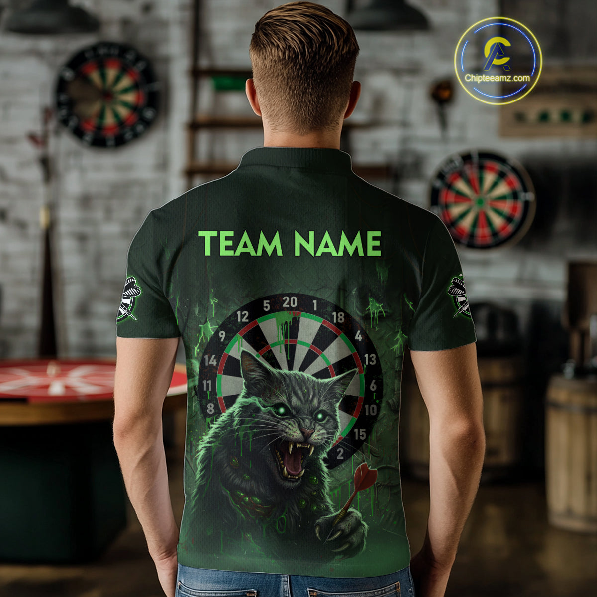 Funny Cat Green Dripping Dartboard Custom Men's Polo Darts Shirt Outfits Darts Jersey NYN1801